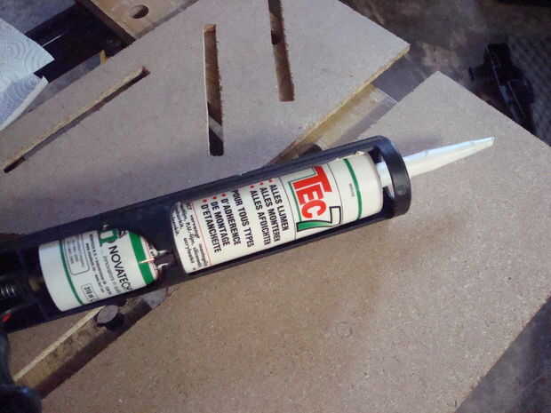 Ahora ya que es madera fácilmente puede utilizar woodglue pero he tenido algunas malas experiencias con woodglue así que decidí utilizar un producto más fuerte. Elegí TEC-7. Es un pegamento potente que puede ser utilizado para praticly todo y es super fuerte una vez seco. Consejo puedes usarlo así.