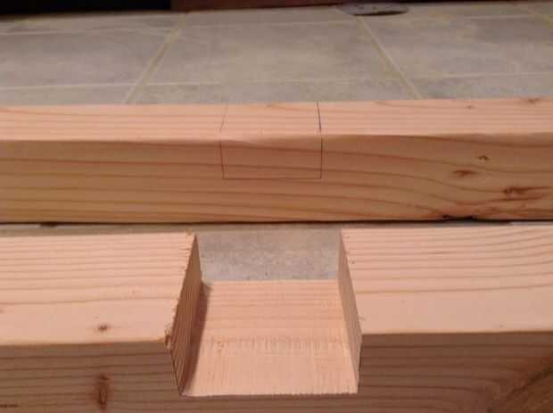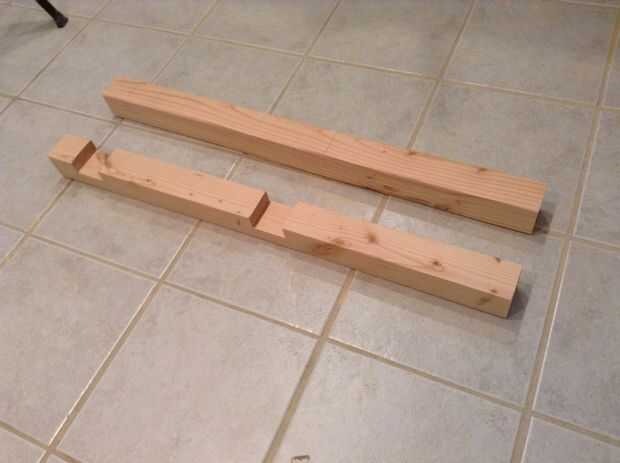 Para las piernas, he comprado 4 x 4, pero parecían demasiado grande y torpe por el tamaño de la isla quería construir, así que decidí hacerlos un poco más pequeño. Usé mi sierra de mesa a cada pata para ser 2.5" en cada lado, así que cada una de las 4 patas eran 2,5" x 2,5" x 35". Después del subsoleo les abajo, tuve que pulir todos los lados para suavizar todas las marcas de corte y redondear las esquinas. Yo también había diseñado las piernas que las muescas de los soportes del estante largo, que son 2,5 "x 1.25" en sección transversal. Para las patas de la muesca, primero dibujé las líneas en las piernas donde quería que las muescas que y la profundidad de corte de mi sierra de mesa para que coincida con el espesor de 1.25" de los travesaños. Desde aquí, yo simplemente fijar la pierna en el trineo del crosscut de mi sierra de mesa y corte una y otra vez hasta que había sacado todo el material de la muesca. Es una buena idea utilizar una pieza de prueba para asegurarse de que su profundidad de corte de las muescas es correcta.