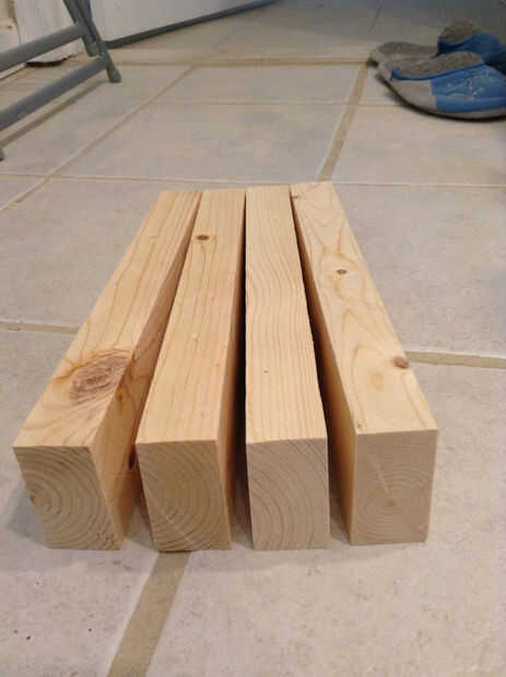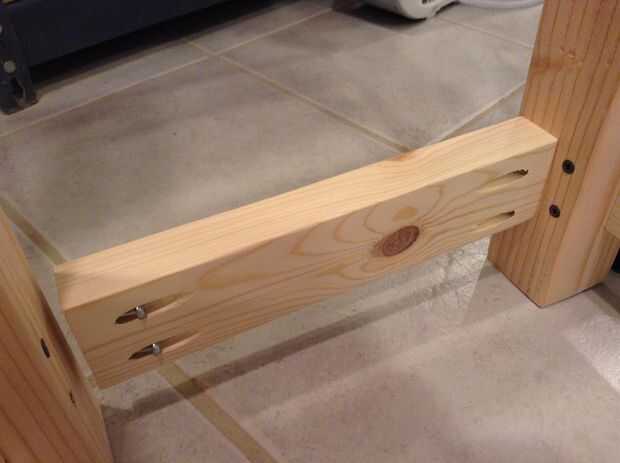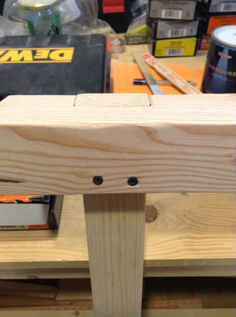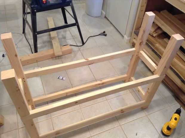 Para los soportes del estante, el proceso fue similar a las patas. He rasgado abajo 2x4s a 1,25 "x 2,5" y corte a la longitud. Para este paso, necesitaba 4 soportes largos que fueron 1,25 "x 2.5" x 46 "estante corto largo y 4 ayudas que fueron 1,25" x 2,5" x 11" largo. Otra vez, lijar los cuatro lados y las esquinas para asegurarse de que todo fue suave. Para las piezas largas, encajen en las muescas y atornillados a través de las partes posterioras de las piernas en los soportes del estante y de los más cortos, fijarse con tornillos de agujero de bolsillo. Una vez que usted arme estas piezas con las piernas, puede hacer que las piernas estén nivelados y no tambaleantes y ajustar antes de que usted ir más lejos.
