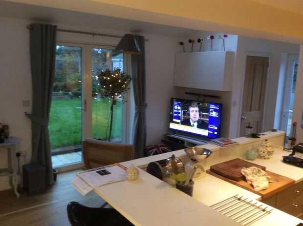 después nos mudamos a nuestra casa, teníamos una fiesta de inauguración de la casa pequeña. Todos los invitados estaba torpemente alrededor de la mesa de la cocina baja. Además, el tamaño y la forma de nuestra casa no nos dan muy buenas opciones para