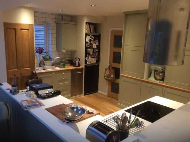 nuevas cocinas son una absoluta estafa! Esta cocina utiliza todas las puertas viejas que han sido arena llena y undercoated muchas veces para darle un acabado profesional. La encimera roble en el armario de vino y zona de fregadero se hace del suelo de madera fijada y pegado a la madera contrachapada de la buena calidad que es aproximadamente un 1/4 el costo de encimeras de cocina real roble sólido. ¡ Cuidado con contracción esta manera tho! Los paneles, revestimiento, Cornise y sobre el armario del vino se hace de mdf grueso de 18mm de hoja con una atención de hgh a detalle en la pintura.