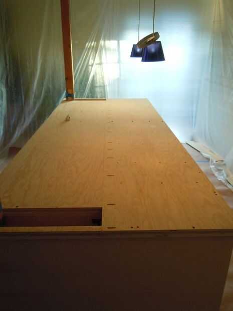 Después de widgets instalados y establecer, utilice dos capas de madera contrachapada de 3/4" como base para su mostrador final.
