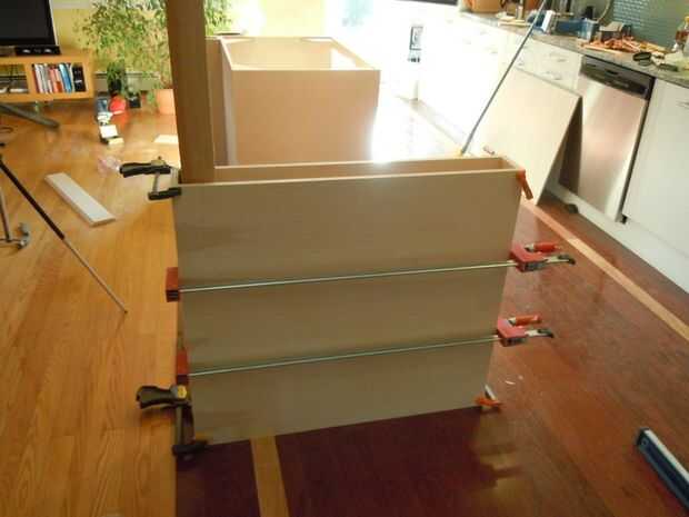 Comencé con la fabricación de cajas para ambos lados de la isla. En este caso tuve que construir (2) de las cajas alrededor de las columnas existentes que presentó un desafío debido a tener que construir las cajas alrededor de las columnas y las columnas están en planos ligeramente diferentes y caja central (1) para la casa ollas/sartenes y las eléctricas.