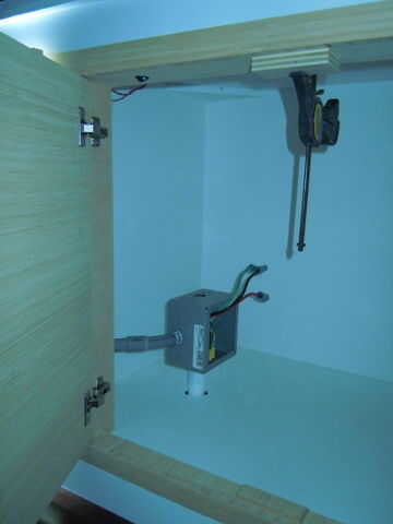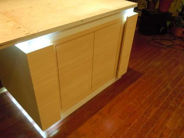 Instalar la iluminación en las tiras de soporte y cable a un terminal principal que va conectado a un transformador de baja tensión/interruptor/dimmer. Puede colocar este en cualquier lugar dentro del gabinete principal que es conveniente.