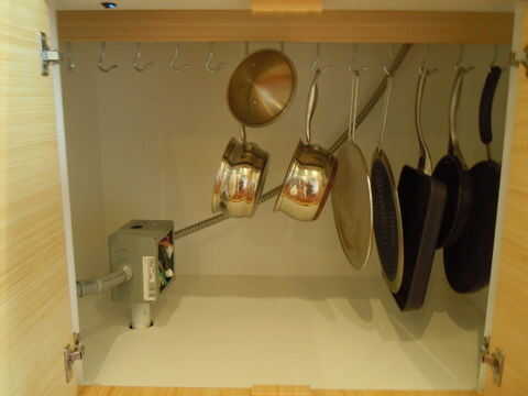 Incluso puedes usar una hoja de plástico debajo y colgar tus ollas y sartenes después de lavarlos y dejarlos pon... TOTALMENTE IMPRESIONANTE!