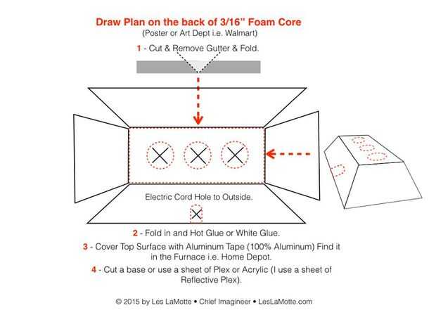 Este es un diseño posible para su uso Si desea hacer una lámpara de luz 3. Nota cuando desea doblar la Junta de núcleo de espuma, debe eliminar un ángulo de 45° de la espuma sólo... para ello colocando un borde recto de acero de 1/8" de la línea de pliegue en ángulo de 45° y tirando ligeramente hacia atrás para que la hoja no pinchar la cara final de la Junta de núcleo de espuma. Repita en el otro lado por lo que ahora tiene el centro del doblez material eliminado. Una vez que todos los cortes se hayan completado, luego con pegamento, cinta de la espuma, me gusta utilizar pegamento caliente para sellar los bordes y unir a la unidad.