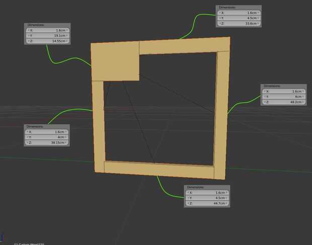 Cuadro 6 contiene toda la información detallada. Fibra de madera se utiliza para construir las partes de la puerta. Puesto que las puertas tienen una forma especial, necesita cortar para adaptarse a esa forma.- 4 *: 0,5 x 43,1 x 43,1