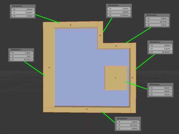 Aquí puedes encontrar una lista de cantidades y propiedades de todos los materiales necesarios. Todas las dimensiones se miden en cm. El primer valor describe el espesor / altura del material.