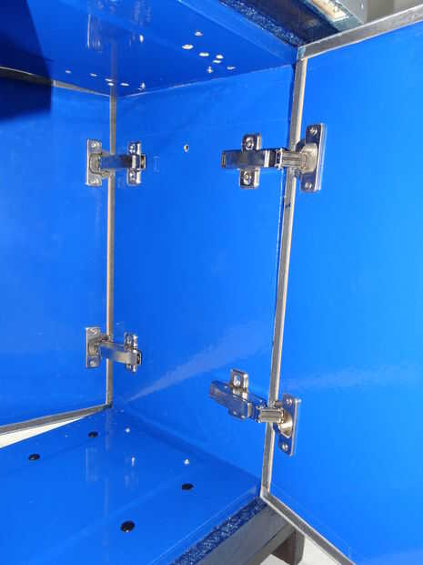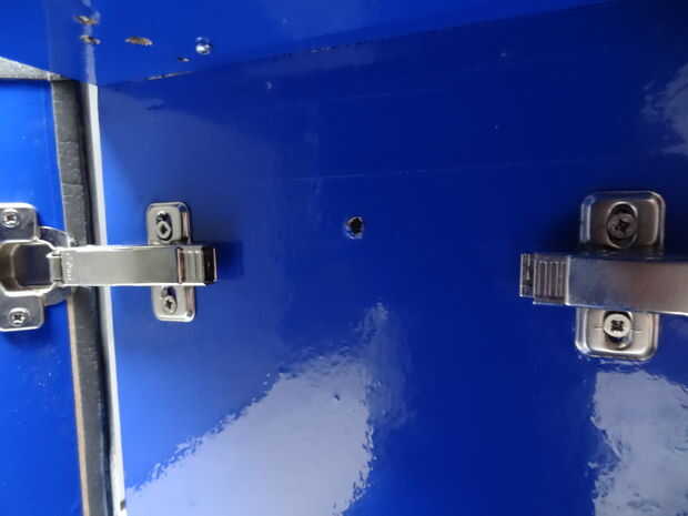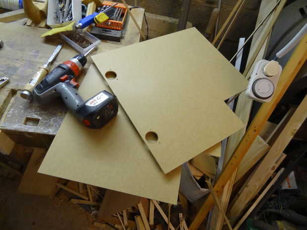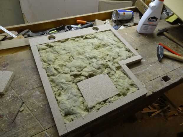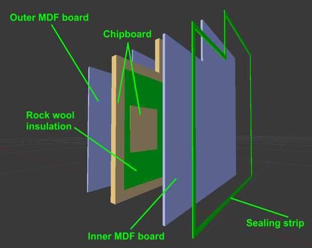 Para poder utilizar tanto espacio como sea posible, ambas puertas tienen una forma especial, que se puede ver en las fotos. En primer lugar, usted necesita poner la fibra MDF externo en las piezas de aglomerado diferentes. La pieza de conglomerado en el centro de la puerta es importante ya que hay algunos tornillos, que saldrá de allí más tarde para el mecanismo de cierre. Para combinar la fibra de madera y aglomerado, utilizas clavos y pegamento de madera. Luego debe poner algún material aislante, preferentemente lana de roca, en la puerta para aislarlo. Usted debe tener en cuenta, que usted no será capaz de modificar el interior de la puerta ya después de poner en la otra pieza de fibra de madera. Una vez que estés seguro que haya terminado con el interior de la puerta, se puede combinar la pieza interior de fibra de madera MDF con el resto de la puerta utilizando clavos y pegamento de madera otra vez. Finalmente se puede aplicar alguna tira del lacre a la parte interior de la puerta para asegurar un aislamiento aún más.