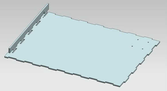 ALS eerst wordt de korte kant met het referentiepunt en de bodemplaat geschoven. Zorg er voor de hierbij dat het referentiepunt en de bodemplaat overeenkomt met de uitsparing en de lat.