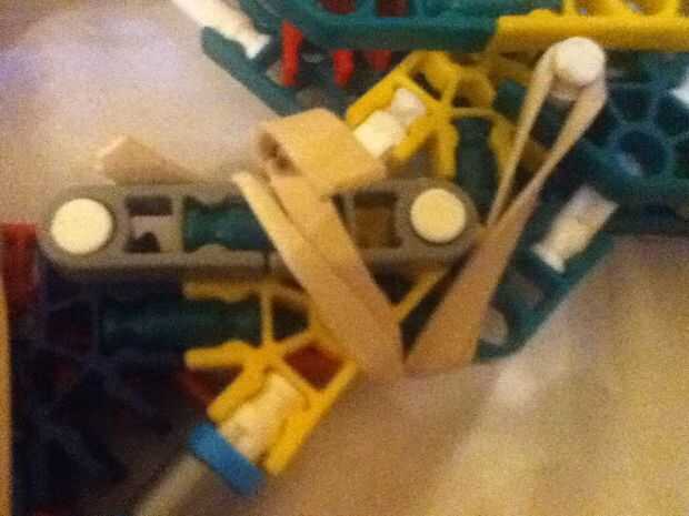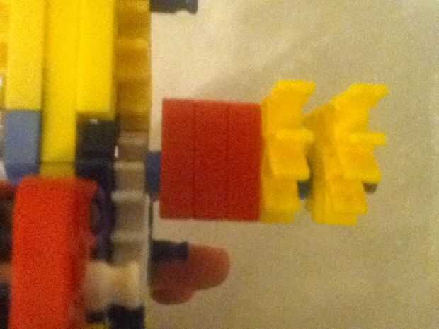 Imagen 5: hacer arco armas como esta en cualquier lado. Poner en una barra blanca con 2 separadores de azul en la parte superior de la barra amarilla en ambos extremos después de poner la goma a través de (esto se mostrará en el siguiente paso)