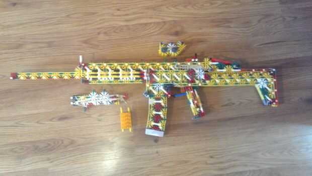 La MK22 original es un.22 lr. rifle, con un muy bonito cuerpo. Realmente disfruté trabajando en y la creación de esta réplica. Lo hice tamaño completo (bueno, eso no es totalmente cierto como uno real es 36 pulgadas extendido, y el mío es exactamente 37 pulg.) y tiene muchas de las mismas características. Tiene lados, superior, inferior y raíles tácticos y cuenta con un resto de mejillas grandes y un buen stock de SCAR-L.