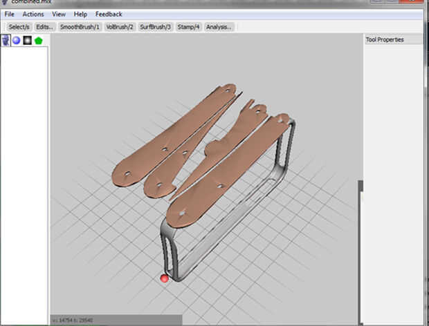 Una vez que tienes tu. Archivos OBJ, seguí pasos de ShadyLogic sobre cómo editar con MeshMixer y pudo rápidamente importar 2 modelos. Importar un modelo, luego importar otro asegurándose de que a "append" el proyecto para tener los dos modelos en el mismo entorno.