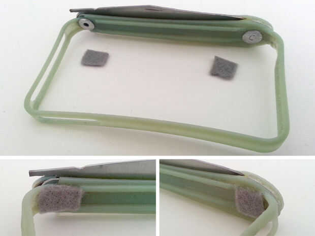Después de que el interior ha sido alisado hacia abajo, trozos de fieltro se cortar en cuadrados y coloca sobre los trozos de metal afilados que podrían entrar en contacto con el cuerpo del teléfono. Esto reduce cualquier daño en el teléfono de metal afilado cuando inserta.