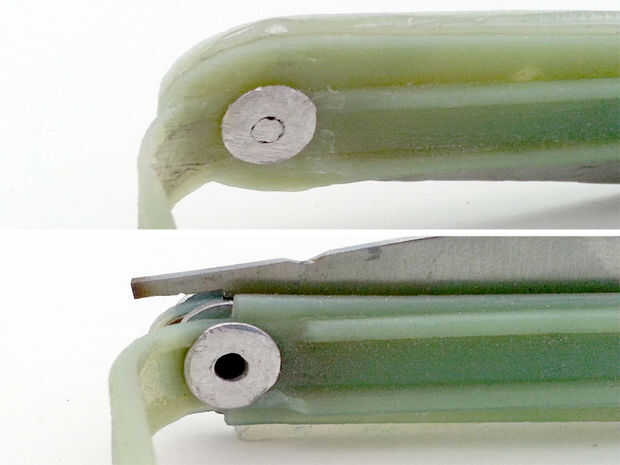 Dos pastillas fueron situados encima el interior caliente y cabeza del remache pegado en lugar.