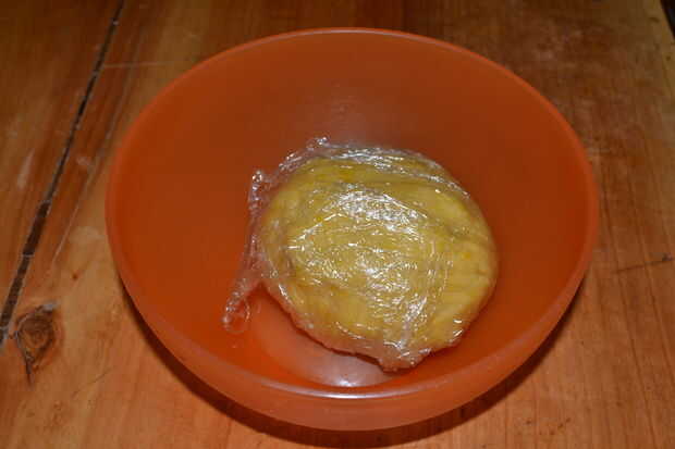 HACEMOS una bola y poner en film transparente, para que no se sequen. Poner en la nevera para en lista de 2 horas (o se encogerá en asadera), mejor una noche.