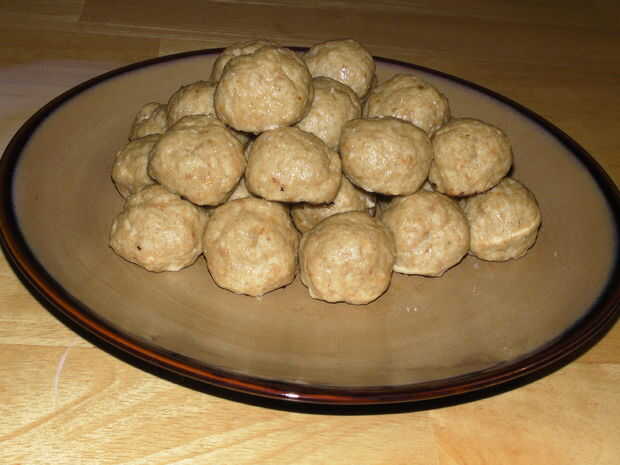 Albóndigas de la espátula sobre una placa o en un Tupperware para servir más adelante.