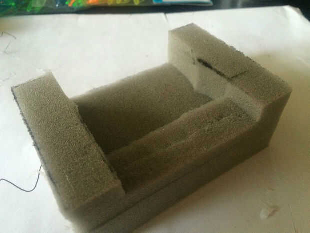 Cortar la parte delantera del asiento para crear la forma de una silla. Con un bolígrafo, secciona una porción de la parte delantera de la base aproximadamente mitad de la altura de los brazos. Debe ser sólo lo suficientemente densa como para mantener el teléfono en su lugar sigue siendo notablemente inferior a los brazos de la base.