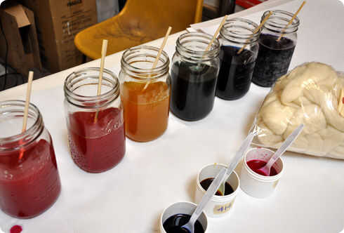 Establecidos sus tarros de mason y añadir colorante solución a ellos como sigue: