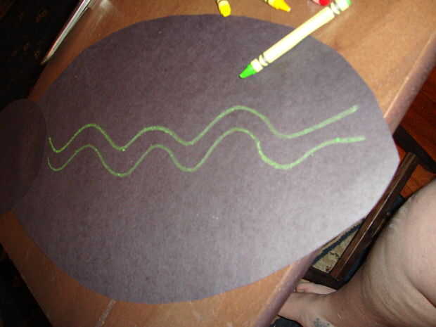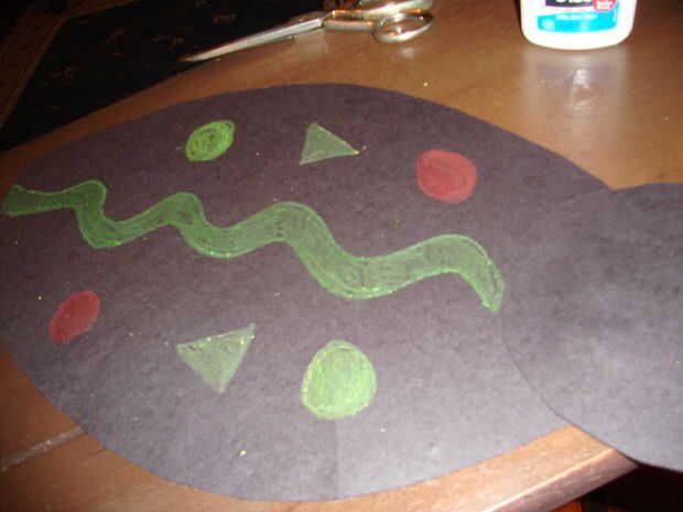 En este punto tienes los niños usar sus lápices de colores para decorar la parte de atrás, o usted puede hacer esto más adelante. Cuando hice esto con mis alumnos que me di cuenta más tarde era mejor, así que podríamos conseguir las piernas. Ayuda el enfoque de los niños en conseguir sus ocho patas hechos porque saben que puede decorar cuando se realizan.