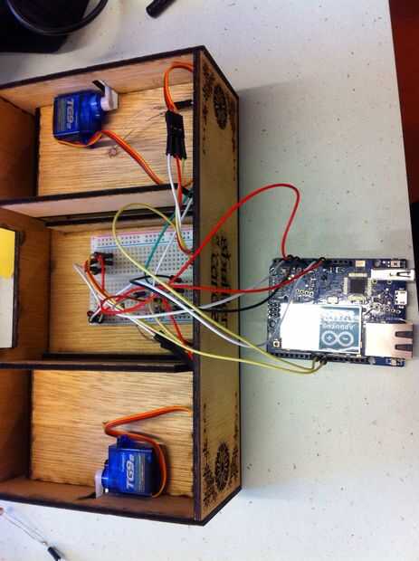 De del waar de las ruimtes kaarten neergelegd worden hebben een apertura de bodem waar de kaarten doorheen zullen vallen. IK Möst nog wel een manier bedenken azada ik reunió de Arduino de kaarten de puerta apertura zou Kunnan duwen. De oplossing die ik hiervoor heb bedacht es het gebruiken van wieltjes die om at om draaien. DIT zou ervoor zorgen dat de kaarten met de draaibeweging meegaan, waardoor ze de puerta apertura zullen vallen. Van de gaat DIT proces comienzan cuando er kaarten op de lichtsensor worden gelegd. IK heb drie lichtsensoren gemonteerd. Eentje enlaces, rechts en het midden. Cuando er enlaces de rechts minder licht es de gaan de dan bij de middelste motores de enlaces, der. de allebei (als er op beide kaarten liggen) draaien. Vanwege het niet op tijd ontvangen mijn van wieltjes, heb ik de servomotor die bij het pakket zat gebruikt als vervanging. Puerta het op en neer bewegen van het uiteinde kan dit alsnog het idee van mijn proyecto laten zien. Na het bouwen van de behuizing ging ik aan de escoria reunió de cuidado. OP deze pagina kun je een voorbeeld vinden van hoe de cuidado es aangelegd en tevens de bevestiging en de behuizing.