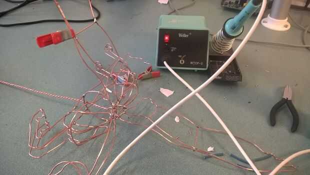 Na dit allemaal gemaakt te hebben, soldeerde ik dit en dirección. Houd er rekening wel me dat er voor algunos piezas veel puja lata es om het goed stevig en dirección te pieza. (* De vleugeldragers maakte ik pas nadat de doos en dirección zat en de servomotortjes bevestigd waren zodat ik precies wist azada lang ze moesten worden.)