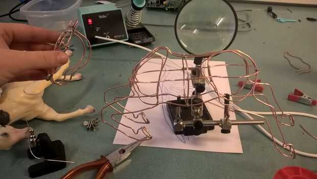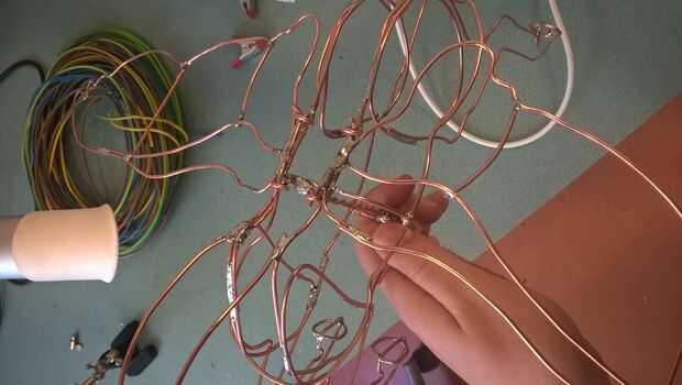 Het koperdraad dat ik gebruikte fue omhulst conocido plástico, dit verwijderde ik met een striptang. Daarna boog ik het met mijn punttang en de gewenste vormen. IK eindigde uiteindelijke met de descarga piezas: