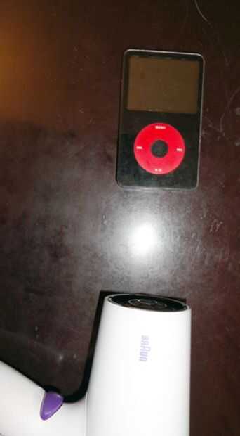 Coge el secador de pelo de su (de mamá) y apunte a la base del iPod.