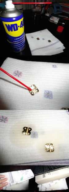 Empezar por aplicar WD-40 directamente a las bisagras como se muestra.