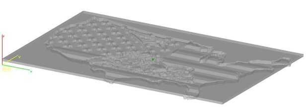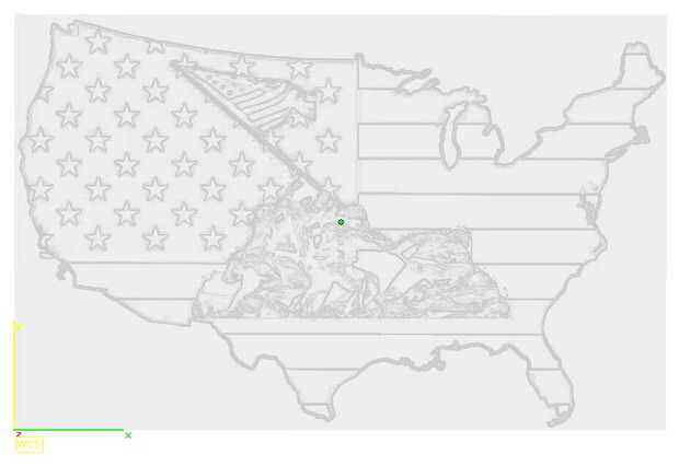 Considerado a la luz, "levantar la bandera en Iwo Jima" overlaid en un mapa de Estados Unidos es visible. Bajo iluminación normal, la imagen no es visible.