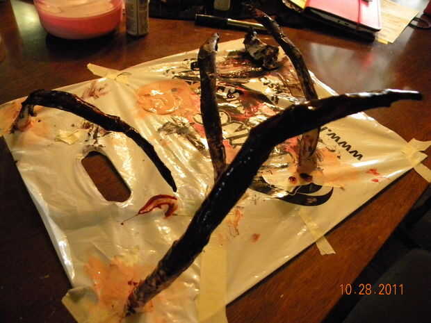 En cuanto a pinceles: literalmente utilizando servilletas de papel. Simplemente había aplastado en mi mano y aplica la pintura con eso. Una vez que el papel comenzó llegar empapado, empezando a añadir una textura de gran y grave a las garras. Algo así como pequeños grupos de verrugas.