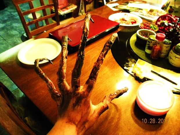 En la mía, el pulgar está doblado un poco demasiado cerca de la base, pero puedo arreglar que en un santiamén una vez pongo para bien con mi disfraz de bruja.