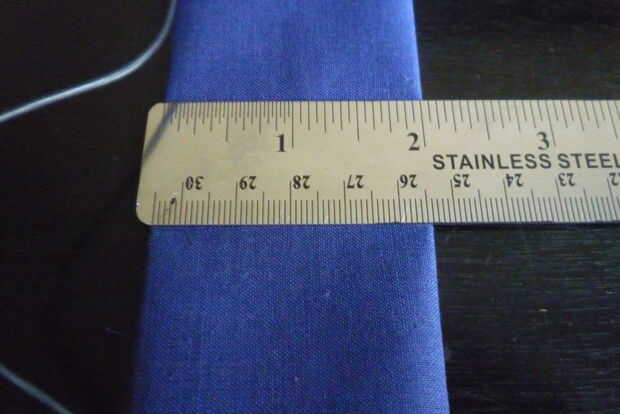 Doble la tela a lo largo de la corta aproximadamente un 1 1/4 de los lados. Usted quedará con 2 pulgadas de la tela hacia arriba en ancho y 6 pulgadas de largo. Este perno hacia abajo para mantener la tela pierda su forma.
