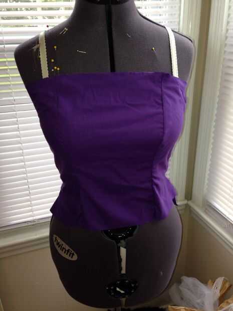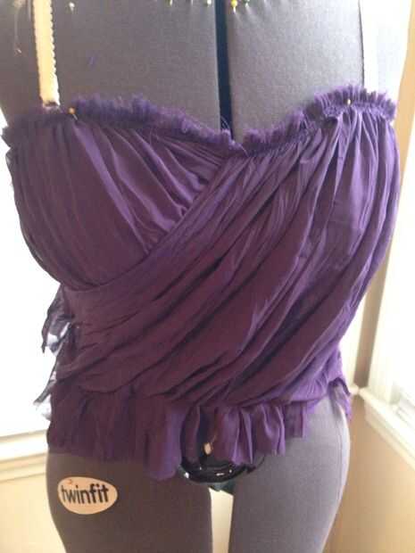 Comenzar con el revestimiento en su pin de maniquí, al final se reunieron en la parte superior de la blusa. La pieza comienza aproximadamente 4" abajo de la costura lateral hacia arriba y sobre la parte superior de la novia y la parada en el medio. (ver los cuadros)