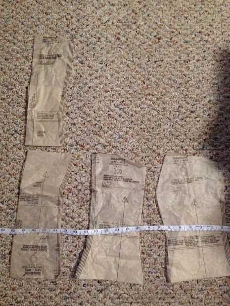 Puedo ajustar 3 piezas de anchos, por lo que se necesita la altura de la pieza de 3 x para tener suficiente tela para hacer las piezas 2 y 4 veces (algunas piezas necesita dos para cuerpos de uno, es decir, una derecha y una izquierda. Los corte en un doblez como el centro de frente y la espalda solo es necesario uno por blusa) necesito 13 "x 3 = 26" de la blusa, doblé hasta 36"(1 yarda) así que tengo más para hacer una banda de cintura. Esto es para la guarnición.