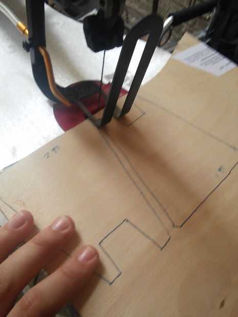 Corte las piezas usando una sierra de contornear. Una vez que se cortan las piezas, limar los bordes para hacerlos lo más recto posible. Lije la madera con papel de lija.