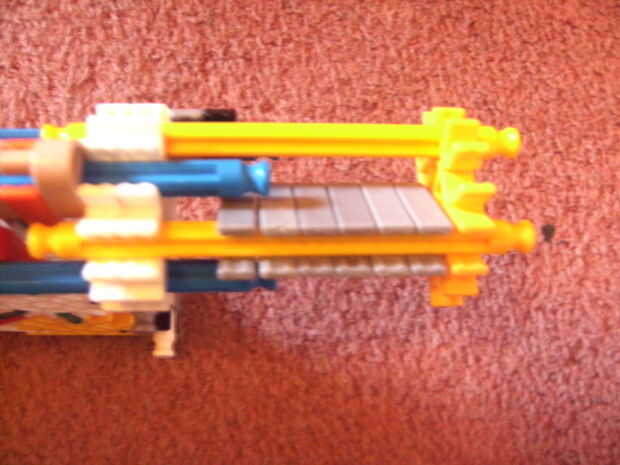 este es mi primer arma de KVG. Dispara hasta 80 pies con dos fuertes bandas de goma. Algunos de los créditos va a darth gecko hombre de consejos y también killer6 para las ideas de una de sus armas. Por favor tarifa mi pistola y me comentáis cómo pod