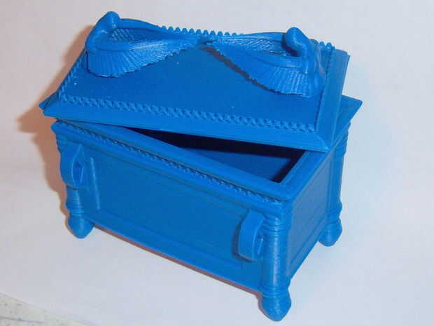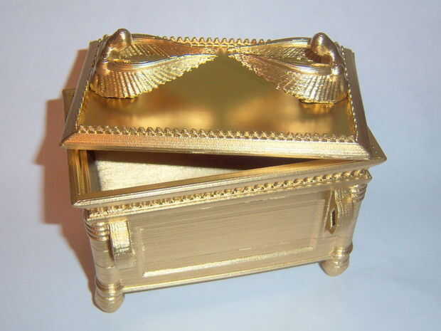 Primero decidí probar usando el Arca de la Alianza de los Raiders de la Arkansas perdió debido a un error de cálculo por mi parte, imprime la parte superior pero no el fondo. Las piezas extendidas no tiene los apoyos necesarios para impresión 3D sin ayuda. Así, mientras que jugando con los soportes, todavía tenía una mitad superior de un arca que podría ser útil.