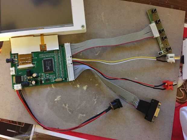 Fuera de Ebay pedí una pantalla de 5" con Junta de controler. 3D imprimí una cubierta para la pantalla y había conectado el regulador a la parte posterior. Sin embargo, sólo tiene una conexión VGA así que añadido un HDMI a VGA convertidor.