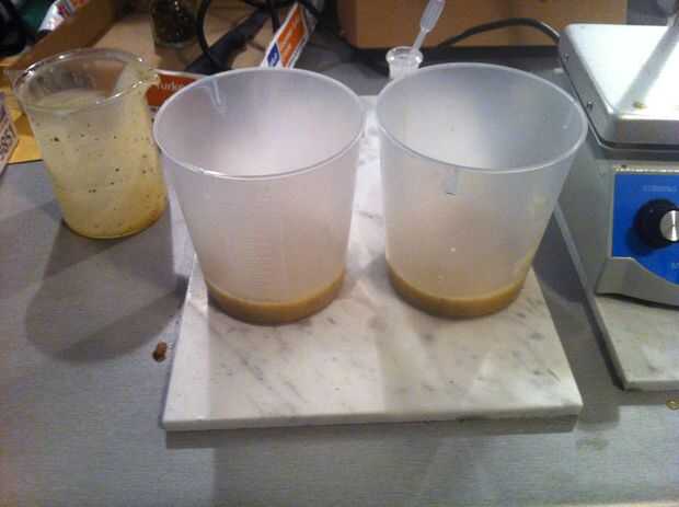 una vez que usted vierte su yogur ahora como jabón en los moldes de guardar y en él después de las primeras 24 horas para asegurarse de que el jabón ha puesto firme para arriba y no es líquida y debe tener cualquier huecos llenos de líquido claro (lejía!)... pero lo contrario ignoralo por 3 semanas y su lista para usar!