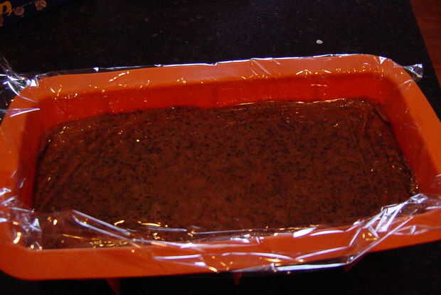 Tapa el molde con el envoltorio plástico o con el resto de la bolsa de basura plástica... presionando el aire extra.