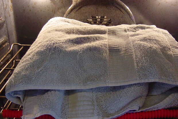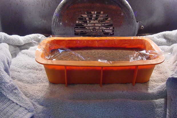Coloque el molde en el horno (o donde alguna vez te has decidido a ponerlo) sobre la toalla o manta y tápelo. Dejarlo durante 24 horas