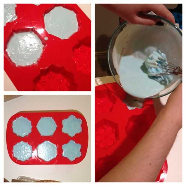 Después de todo, es completamente mezclado, llenar moldes. Nota: si espera demasiado tiempo a verter, el jabón puede conseguir grueso, es mejor trabajar con él cuando está caliente. Si agrupan por simiply solo un poco, microondas durante unos segundos más. Deje reposar por lo menos 40 minutos a temperatura ambiente o hasta que se enfríe completamente.