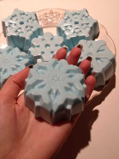 Pop los copos de nieve de los moldes y poner en bolsas de regalo! Disfrutar de sus impresionantes jabones!