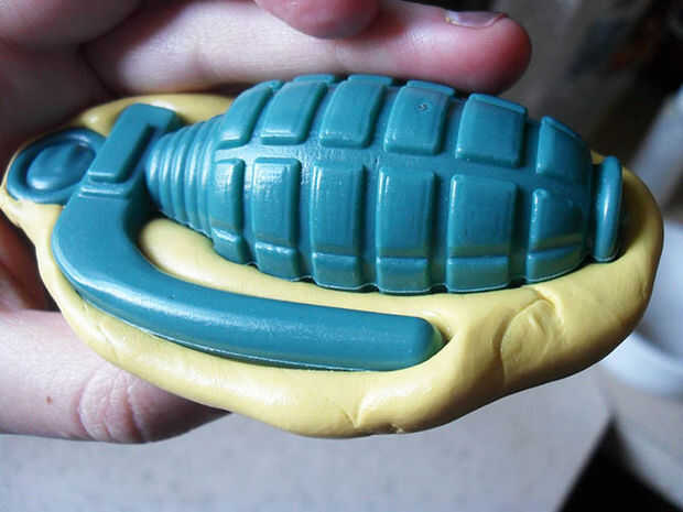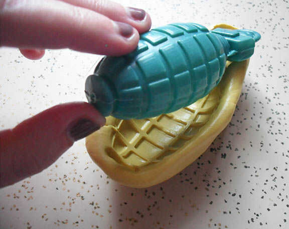 Tuve este pequeño Granada plástica de un disfraz de Halloween barato o y pensó que sería una divertida forma de jabón. Siendo el plástico barato, tuvo también una buena costura vuelta marcando la línea de centro, que sería de gran ayuda para hacer un molde de dos partes.