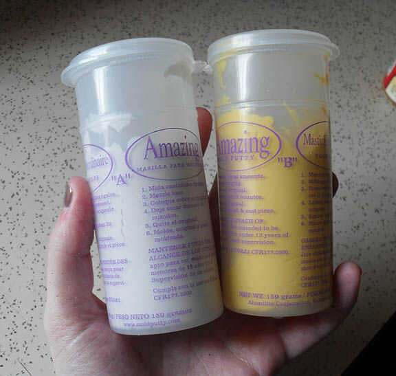 Vendrá su masilla de molde en dos partes, normalmente marcadas A y B.