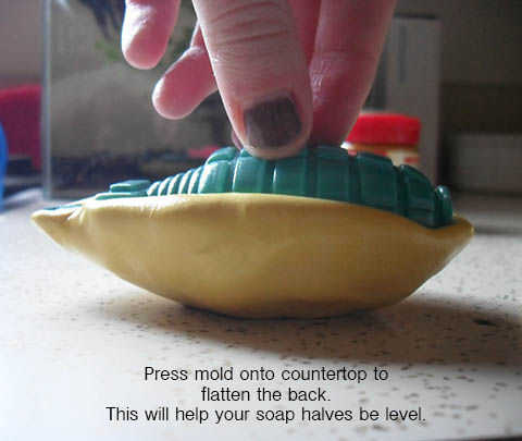 Presione suavemente el fondo del molde sobre la encimera. Esto creará un área plana que permita su molde nivel y evitar que se derrame y cambio cuando se rellena posteriormente.