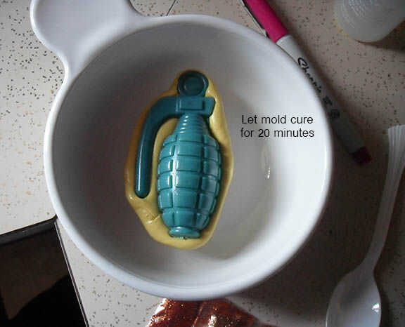 Después de 20 minutos, funciona una punta de dedo por debajo del borde de su molde. El material será ligeramente gomoso y debe flex un poco, permitiendo que el objeto de saltar derecha.