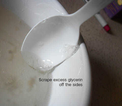 Microondas en incrementos de más de 15 segundos hasta que la glicerina se haya derretido. No lo hierva.