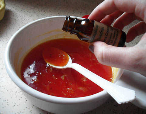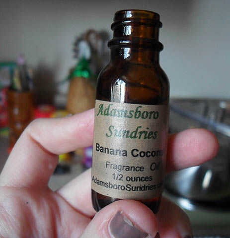 Después de mezclar la cúrcuma he añadido unas gotas de aceite de la fragancia de coco del plátano para la fabricación del jabón. Al hacer un lote más grande de jabón que encontrarás que allí se recomiendan pautas de medición a seguir, y aún algunos sitios que ofrecen calculadoras de ingredientes por peso. Puesto que sabía que estaba haciendo un pequeño lote de pensé unas gotas haría el trabajo sin llegar a ser abrumadora. Agitar bien para asegurar distribución. Puede dejar la glicerina sin perfume, si deseas, o utilizar aceites esenciales. *De aceites que pueden crear una sensación de ardor en la piel, tales como Cymbopogon.
